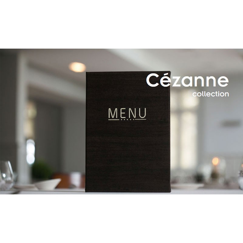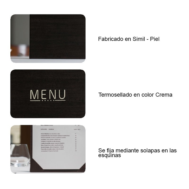 Portamenús collection Cézane fabriqué en imitation cuir, souple, à la chaleur d'étanchéité dans une couleur crème et les volets fixe sur le couvercle. Idéal pour l'hôtellerie et la restauration. A4 taille: 23x32 cm