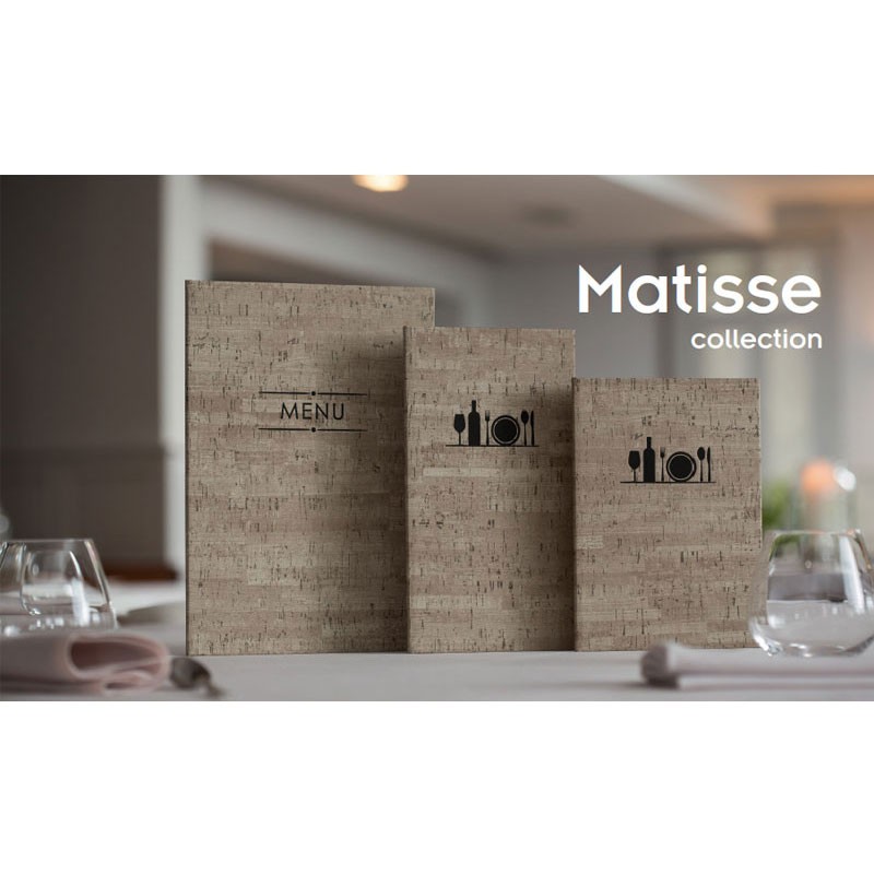 Portamenús collection Matisse produit en imitation cuir avec sceau de chaleur en couleur noir et les manches fixe à partir de PVC. Idéal pour l'hôtellerie et la restauration. La taille à choisir.