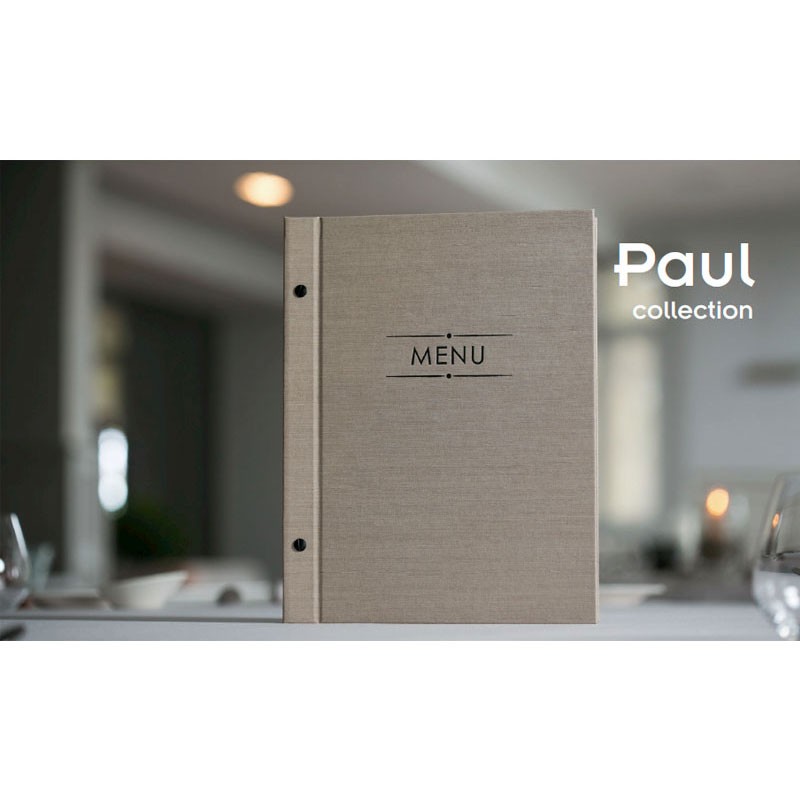Portamenús collection Paul fait dans Telflex avec sceau de chaleur en couleur noir et les manches de PVC avec vissée extérieur. Idéal pour l'hôtellerie et la restauration. A4 taille: 25,5x32 cm