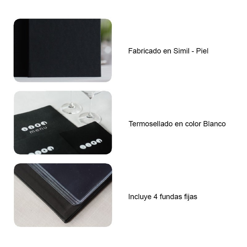 Portamenús collection Dalí fait en imitation cuir avec la chaleur d'étanchéité, de couleur blanche, et couvre fixe PVC. Idéal pour l'hôtellerie et la restauration. La taille à choisir.