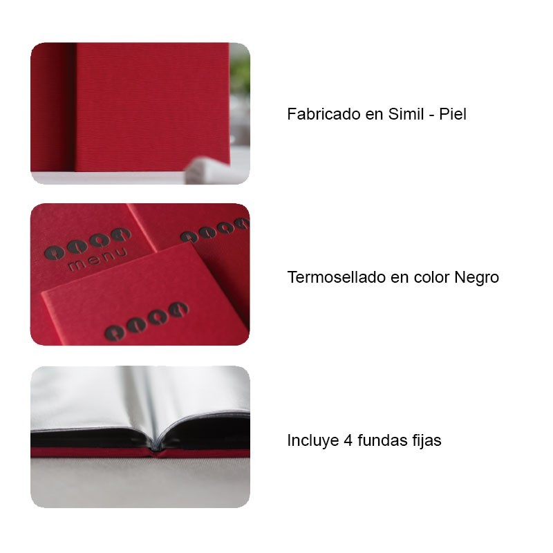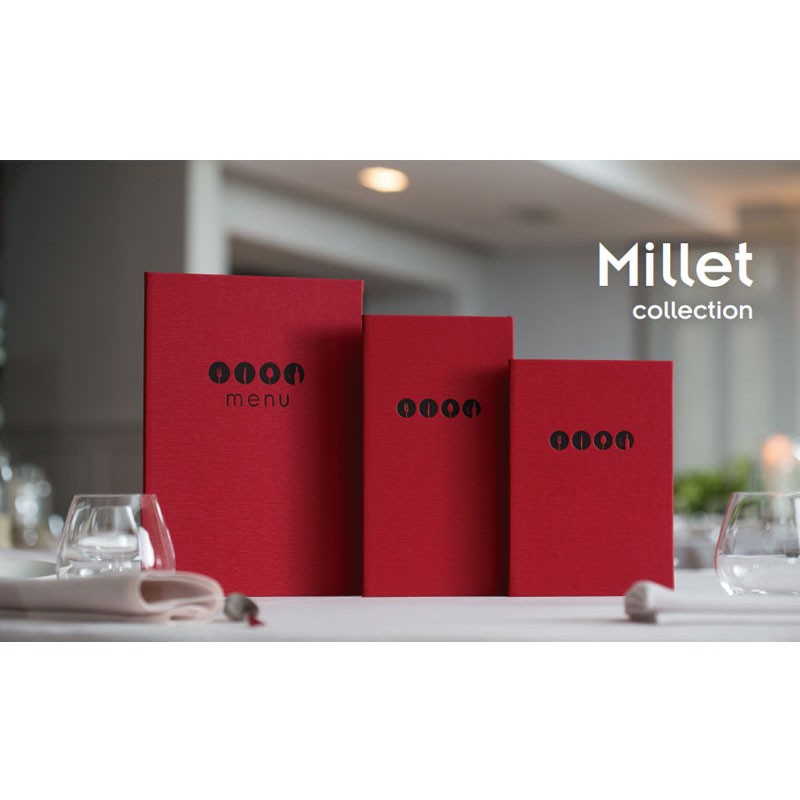 Portamenús de la collection Millet produite en imitation cuir avec sceau de chaleur en couleur noir et les manches fixe à partir de PVC. Idéal pour l'hôtellerie et la restauration. La taille à choisir.