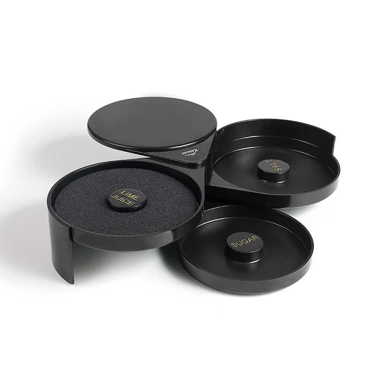 Accessoire avec 3 compartiments bien identifiés et un design pliant idéal pour apporter une touche spéciale aux cocktails.