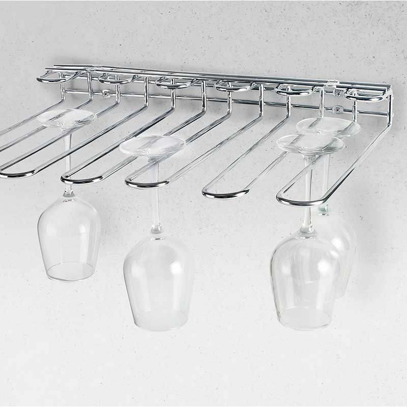 Support à coupes en acier chromé qui permet un gain de place et un rangement des verres à pied de façon ordonnée.