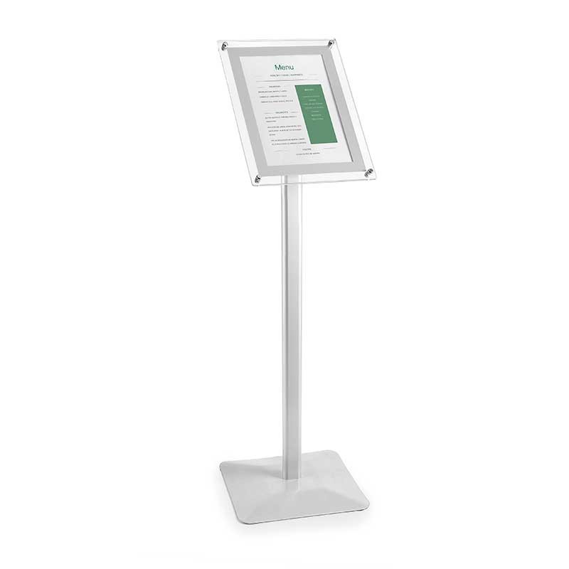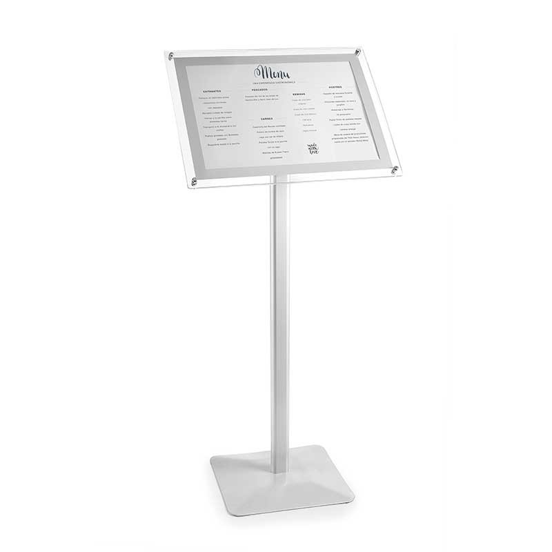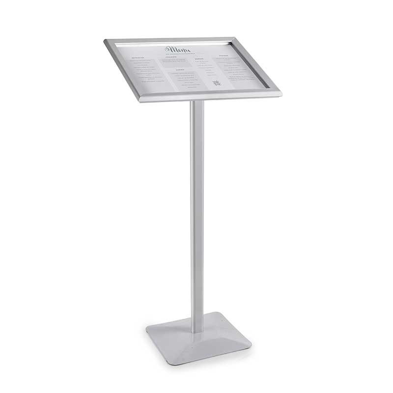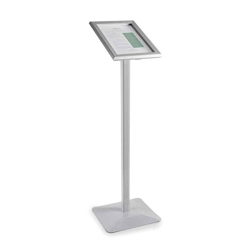 Pupitre porte-menu en aluminium apte pour afficher des menus de format A4 / A3 à lintérieur et à lextérieur. N'inclut pas le porte-menu.