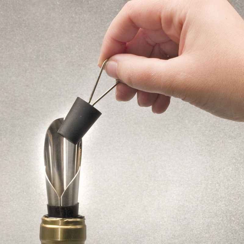 Set avec une buse en acier inoxydable pour servir les vins propres, plus d'un bouchon universel conique.