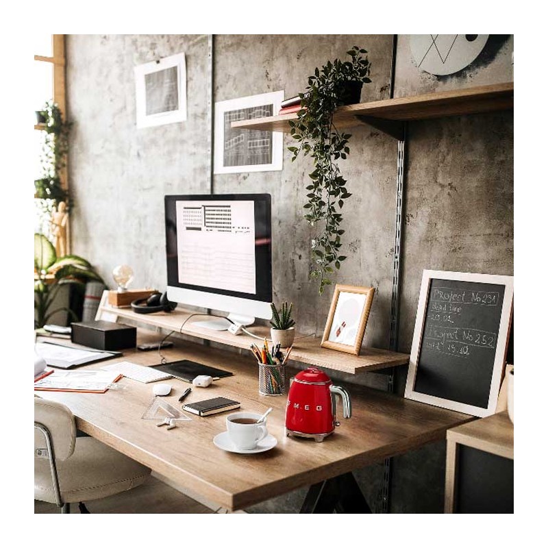 Avec une puissance de 1400 W et une capacité de 0, 8 litre, la mini bouilloire Smeg minimise le gaspillage d'eau. Il convient à divers environnements, tels que les bureaux à domicile et les salons, mais il peut également donner un aspect attrayant et design aux chambres d'hôtel. La double paroi interne en acier inoxydable maintient la température de l'eau plus longtemps, tandis que la paroi externe en plastique reste fraîche au toucher.
