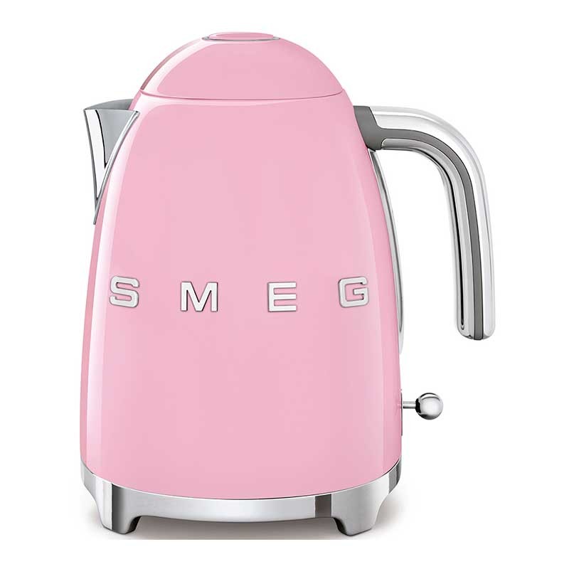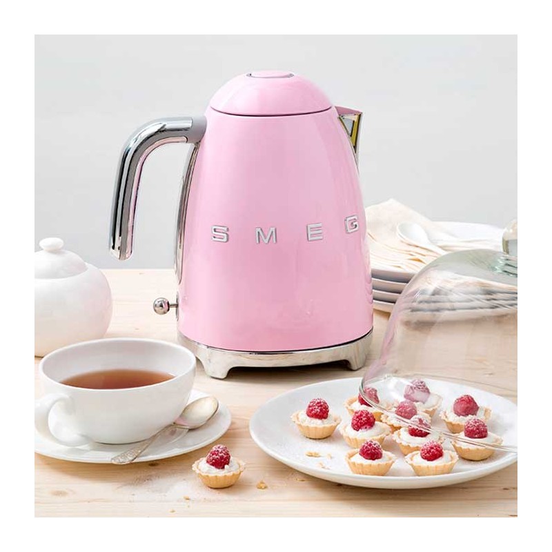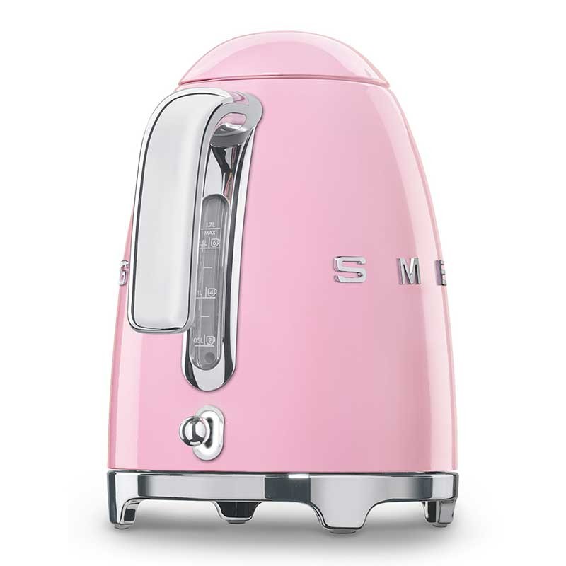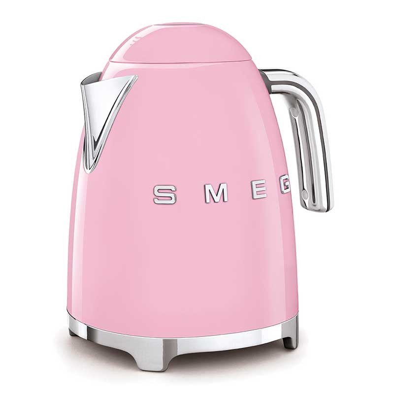 Bouilloire standard Style Smeg 50 Capacité de 1,7 litre avec corps en acier inoxydable finition rose brillant et base pivotante à 360º.