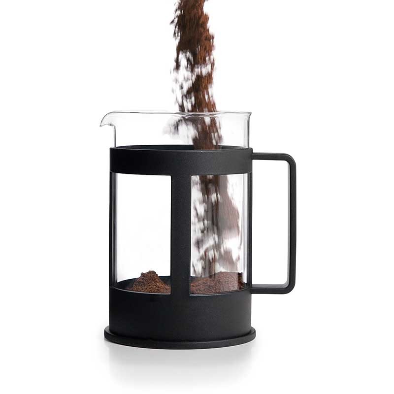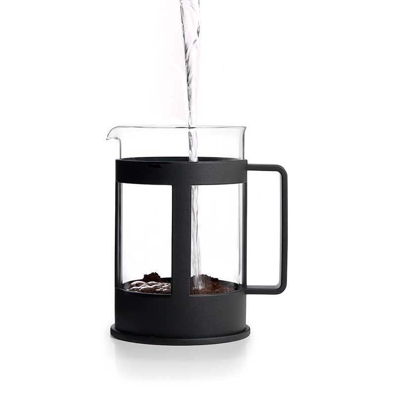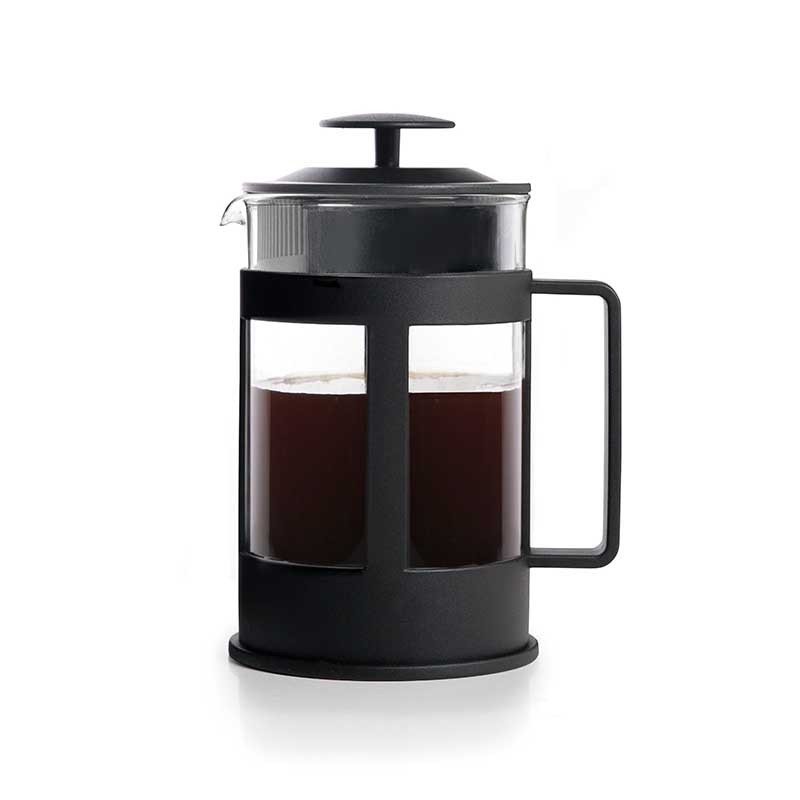 Cafetière à piston modèle Black fabriquée en verre borosilicate, polypropylène et filtre en acier inoxydable 18/10.
