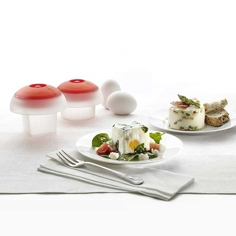 Leurs formes uniques vous permettent de donner forme à l'œuf pour améliorer les présentations sur la plaque. Un ensemble de deux Ovo cuire deux œufs avec des formes différentes, dans ce cas, une circulaire et l'autre carré, à changer quand vous le voulez, ou pour faire deux œufs avec différentes formes.