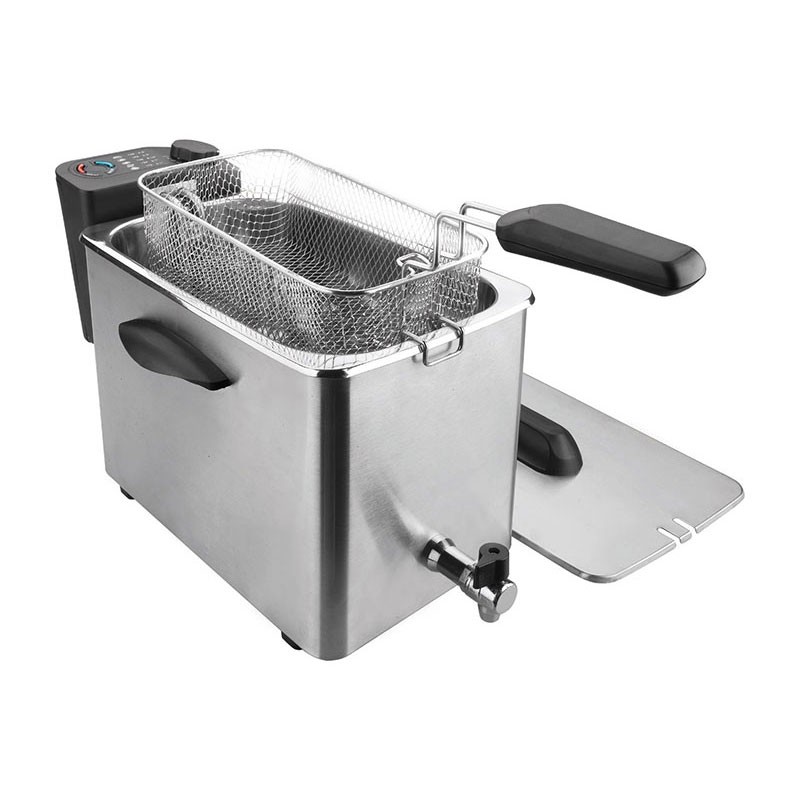Développez Friteuse électrique semi-professionnelle, 2500 W, 4 litres de capacité et un robinet construit pour enlever l'huile, fabriqués en acier inoxydable 18/10 de haute qualité.