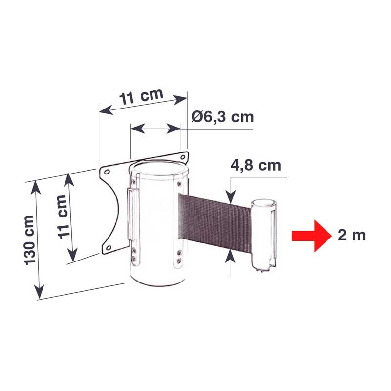 Support mural en métal noir avec bande de 2 mètres, et rétractable mécanisme d'affiner ou de limiter les domaines de l'accès dans les lieux publics.