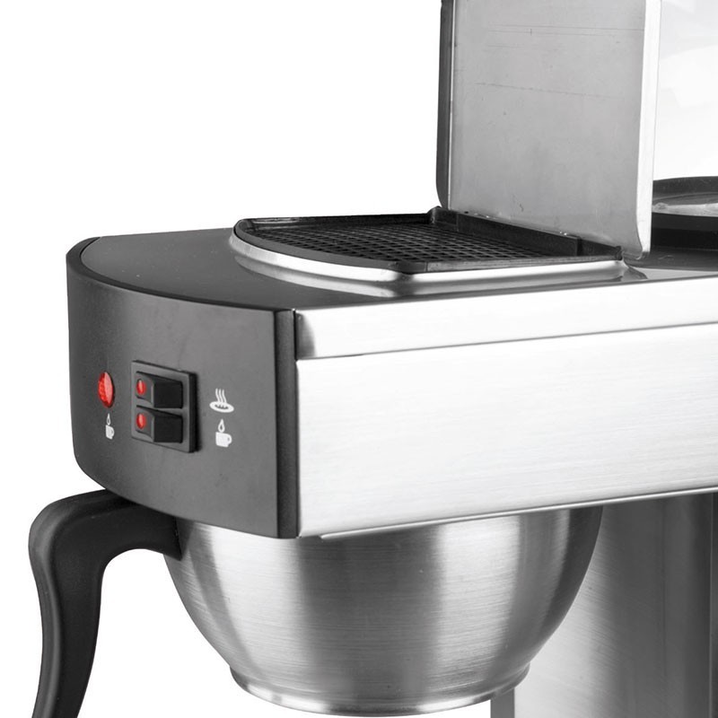 La cafetière comprend également des commutateurs pour le fonctionnement et le chauffage indépendant et un filtre à eau dans la partie supérieure.