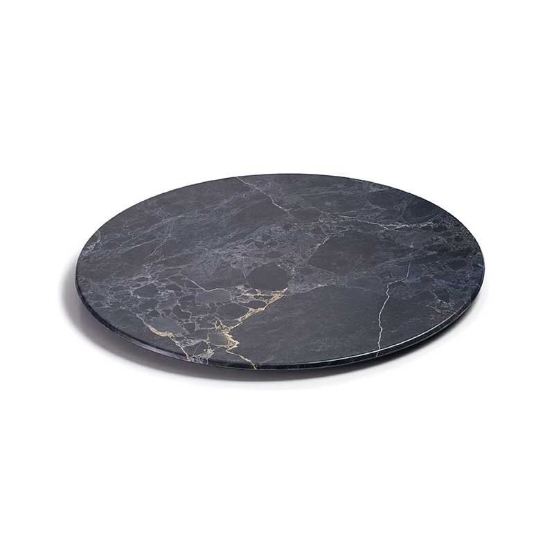 Plateau rond modèle Stone fabriqué en résine de grande qualité à un aspect élégant semblable au marbre.