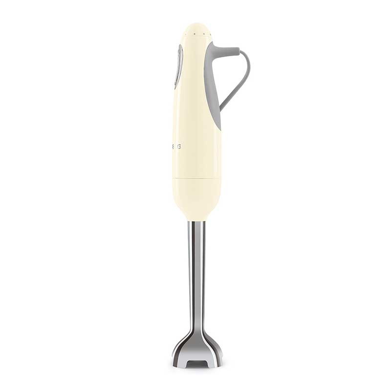 Mixeur à main Smeg 50's style gloss cream finish avec 700 W de puissance, vitesse variable et fonction turbo.