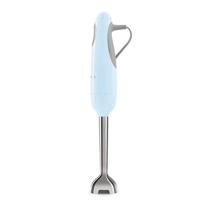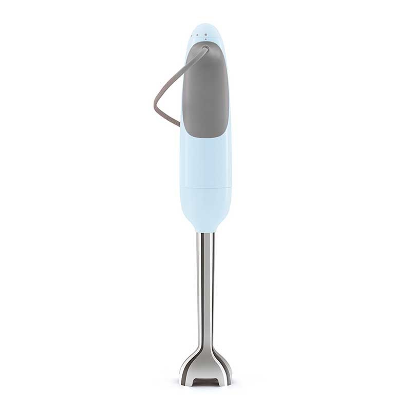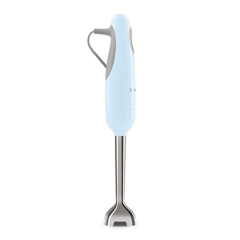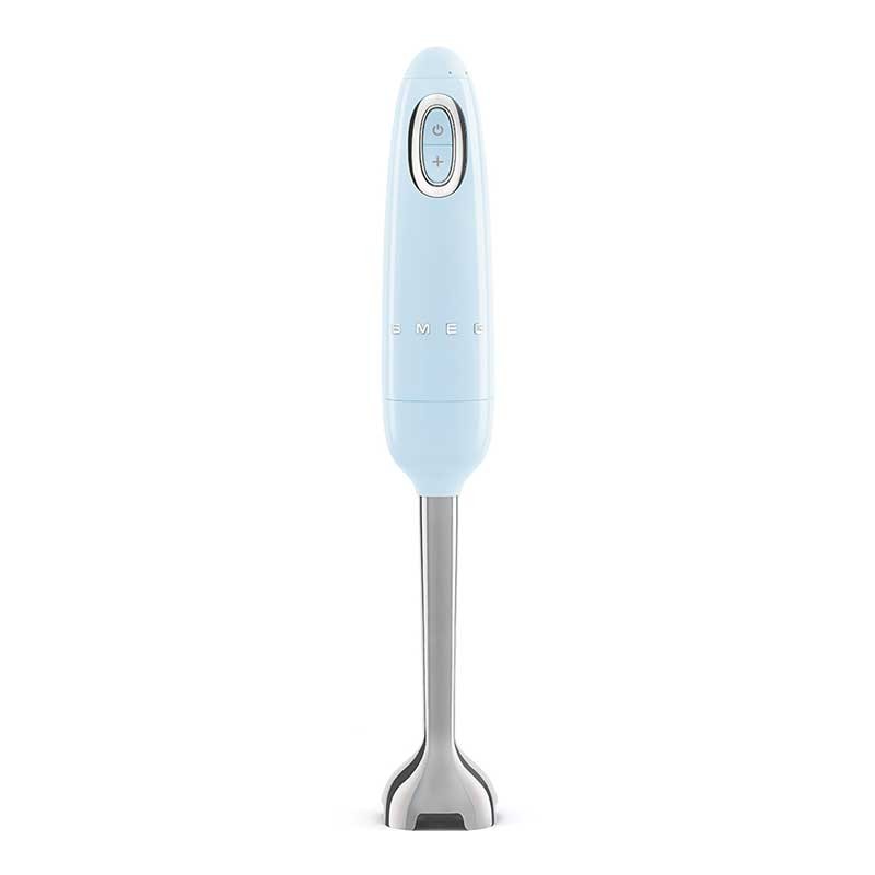 Mélangeur à main Smeg 50's style ciel bleu finition brillante avec 700 W de puissance, vitesse variable et fonction turbo.