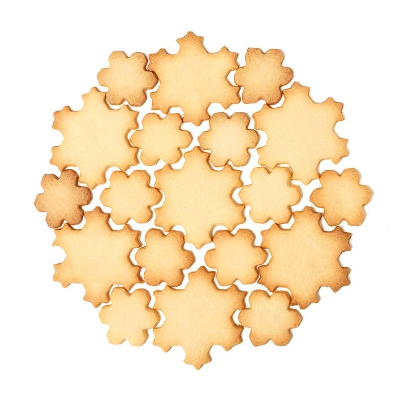 Let it Snow! Let it Snow! Amusez-vous, décorer et déguster. Obtenez 19 biscuits en forme de flocon de neige d'une coupe simple, donc très facile et rapide. Pour profiter en famille ou avec des amis, fabrication de biscuits, à offrir ou à partager. Sa simplicité permet aux enfants de participer à la préparation de la recette prend également l'avantage de beaucoup plus de masse depuis que la moisissure ne vous autorise pas à laisser des espaces entre les cookies et cracker.