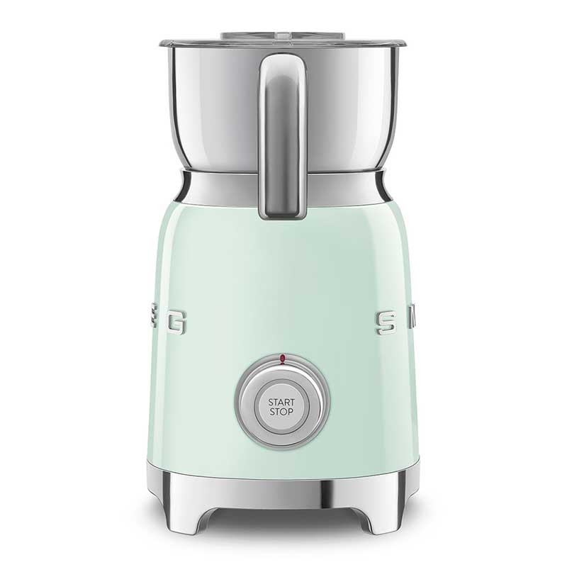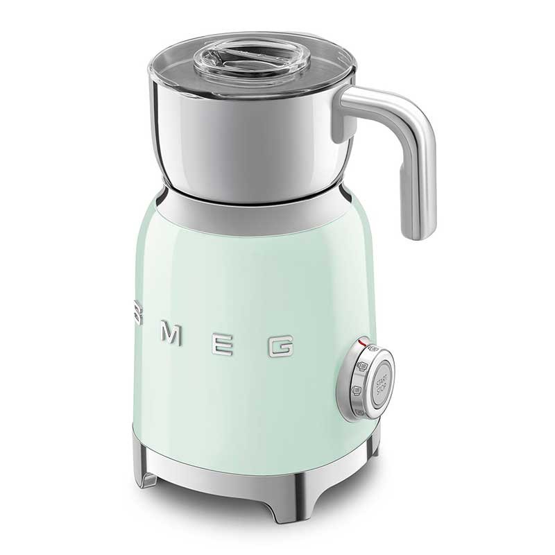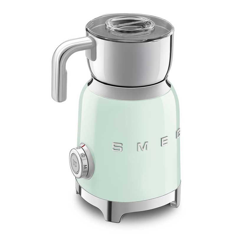 Mousseur à lait style Smeg 50's avec corps en acier inoxydable avec finition green water gloss et 6 programmes pour préparer des boissons chaudes ou froides avec ou sans mousse.