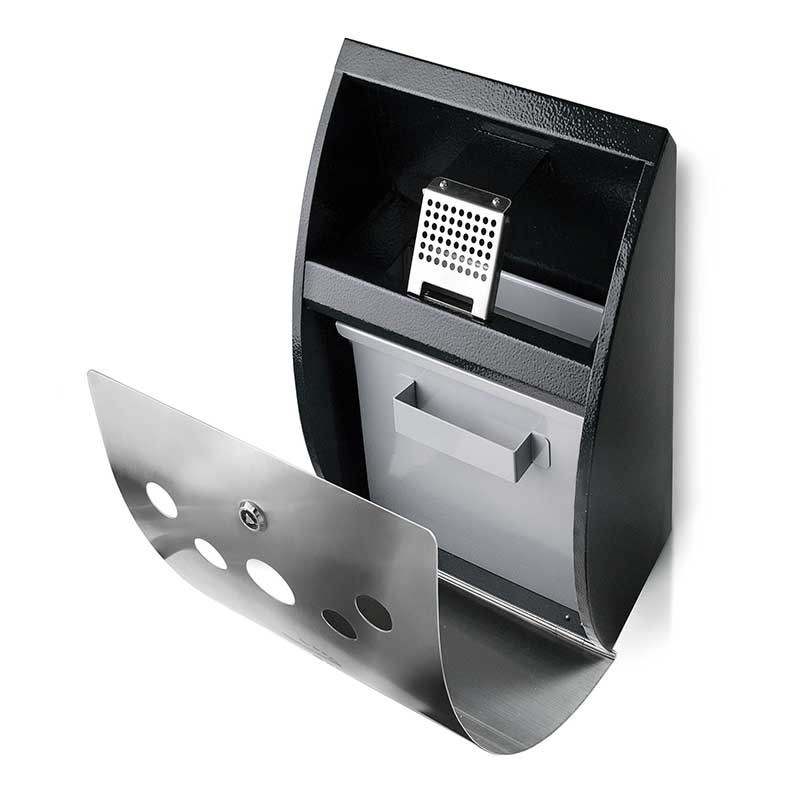 Cendrier pour le montage mural, en acier galvanisé, avec une conception de la couverture qui est discret et élégant en acier inoxydable 18/10.