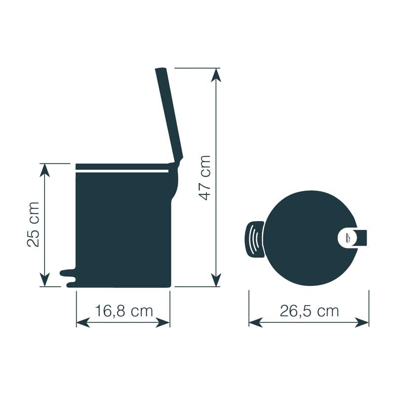 Poubelle de 3 litres en acier inoxydable gris avec ouverture du couvercle par pédale et cuve intérieure extractible en polypropylène avec anse.