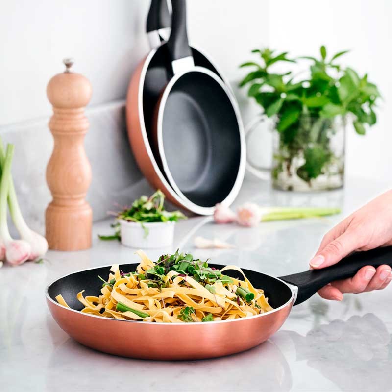 Poêle en aluminium modèle GARINOX avec revêtement antiadhésif bi-couche renforcé, résistant aux rayures.