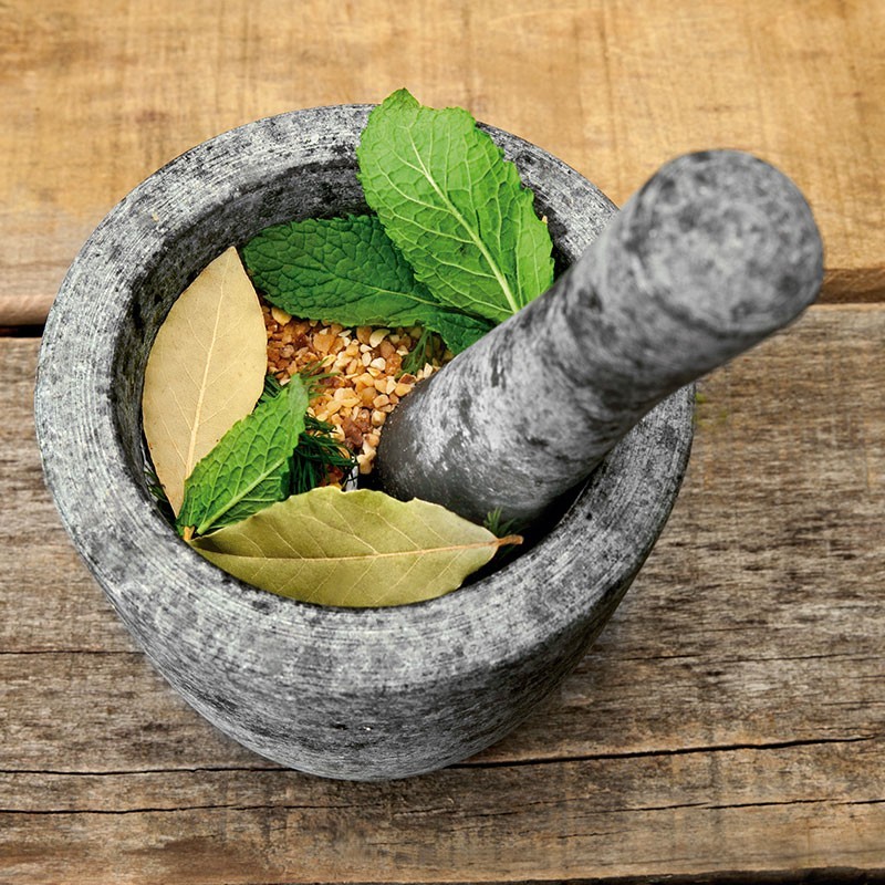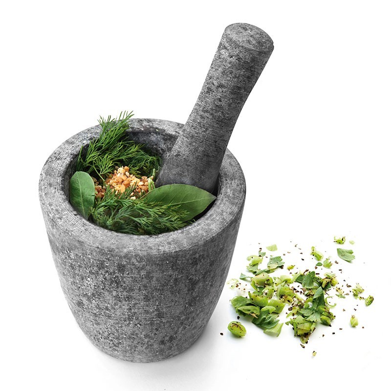 Mortier de cuisine avec la main, fabicado en granit de haute qualité synthétique non-poreux. Mesures: 11 x 11 cm