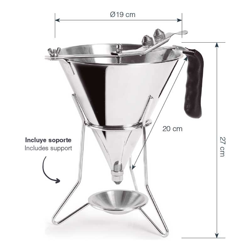 Entonnoir à piston en acier inoxydable idéal pour remplir ou décorer des assiettes avec des sauces chaudes et froides.