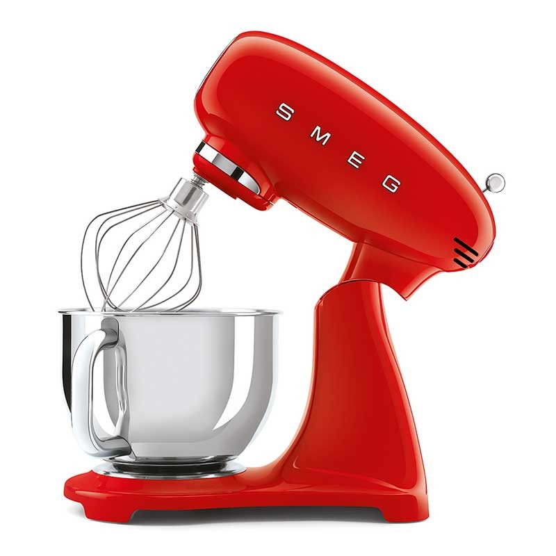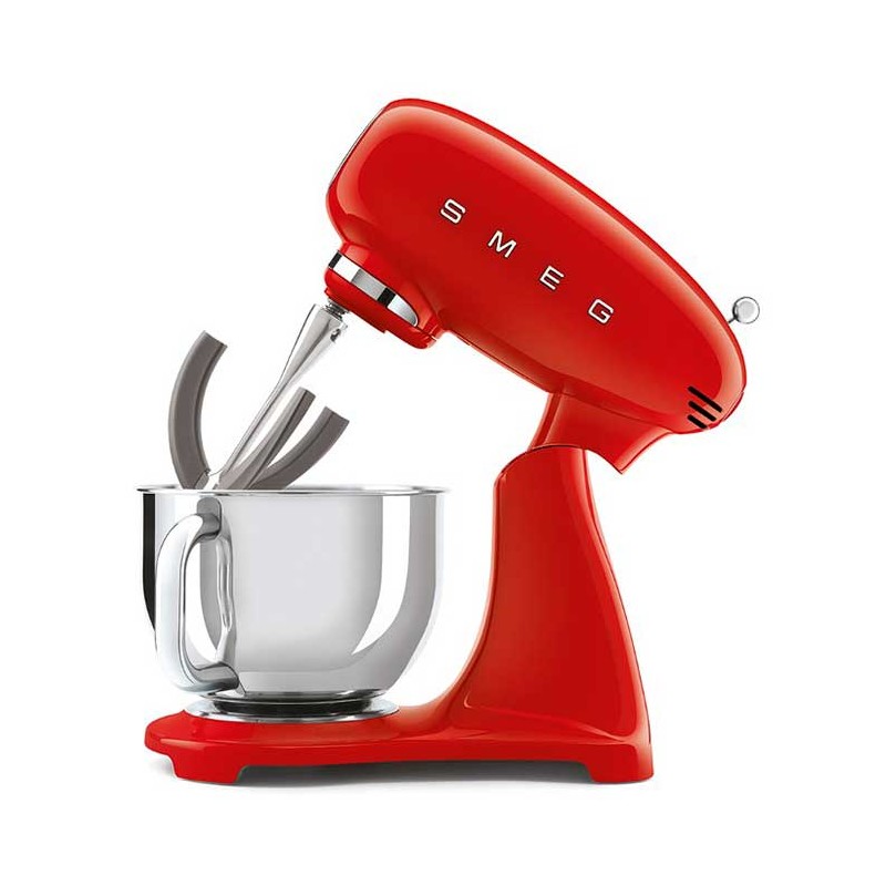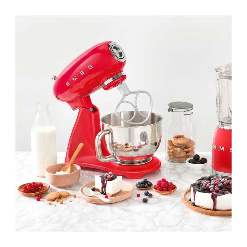 Mélangeur couleur de style Smeg 50 avec corps en fonte d'aluminium, 800 W de puissance et 10 vitesses.