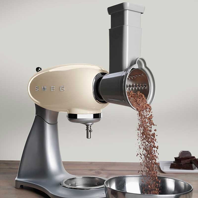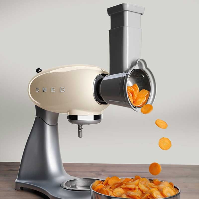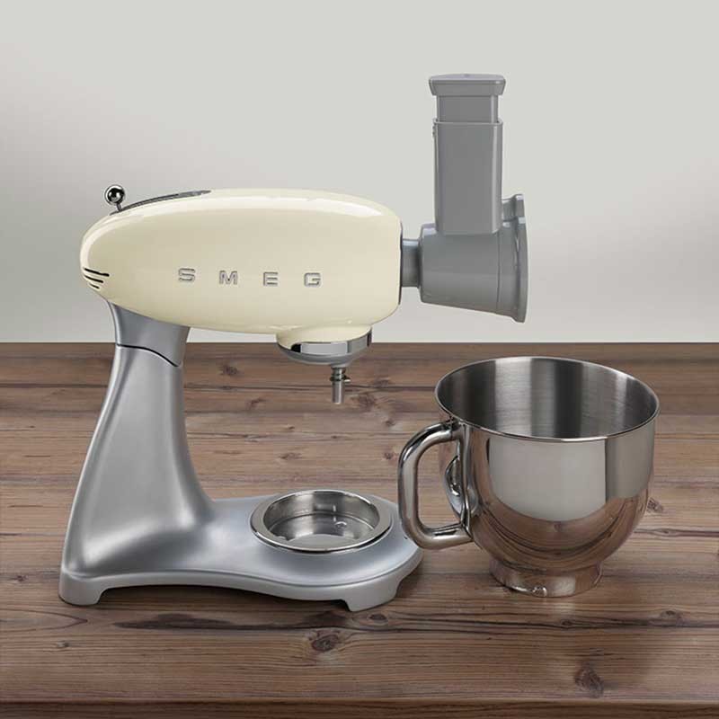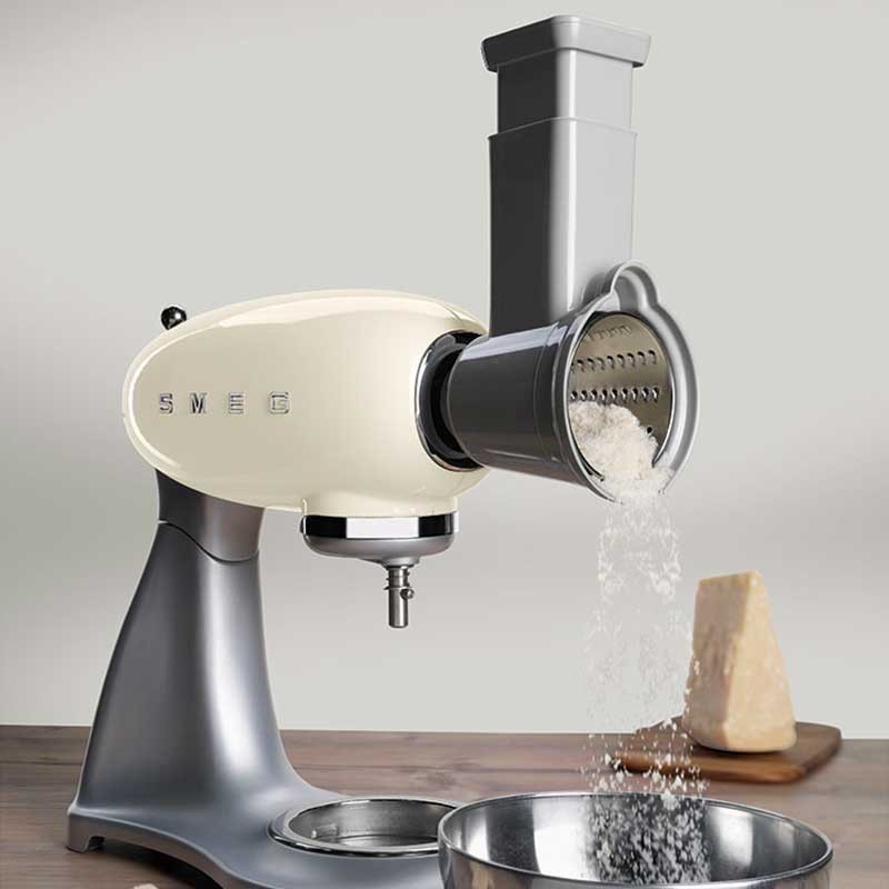 Pack de 4 accessoires grilles et plastifieuses compatibles avec les robots de cuisine Smeg 50's Style modèle SMF02 et SMF03.