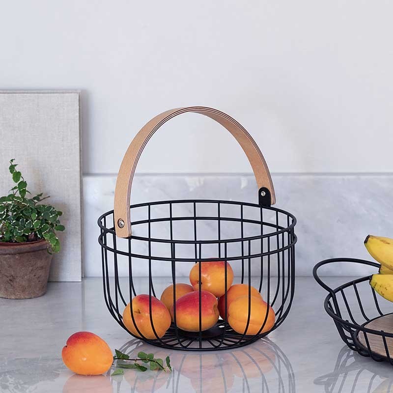 Bol à fruits ronde en fil d'acier solide et durable avec une finition noire mate et un design original et décoratif.