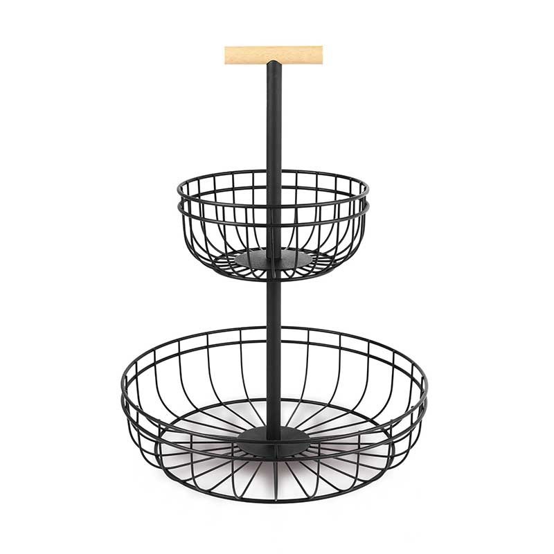 Fruit double en 2 hauteurs réalisés en fil d'acier solide et durable avec une finition noire mate et un design original et décoratif.
