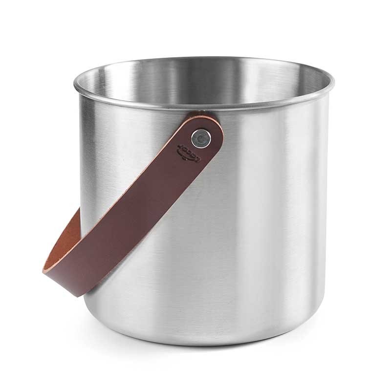 Développez Enfriabotellas en acier inoxydable 18/10 avec un design élégant avec une finition brossée avec un cuir de la poignée de transport pour un transport facile.