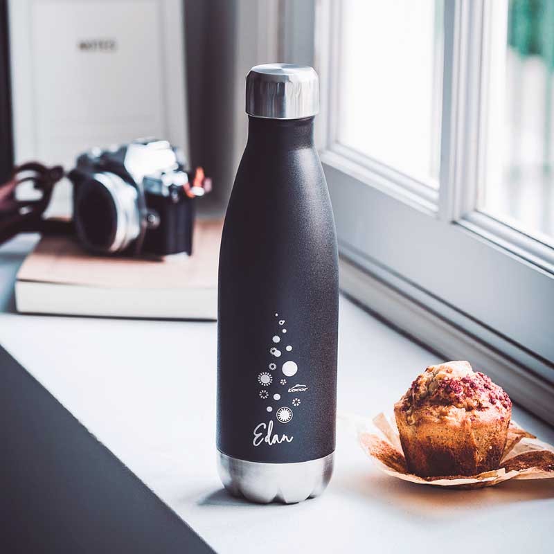 Bouteille Inox avec couvercle hermétique modèle Edan Black pour transporter et conserver les boissons chaudes ou froides.