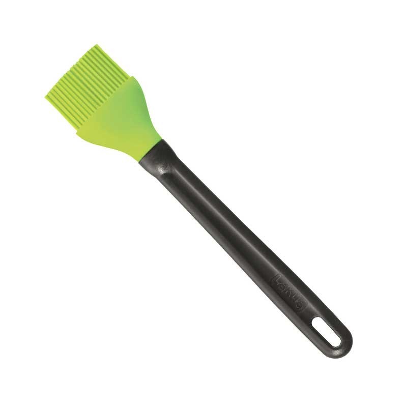 Cuisine pinceau de 24 cm de longueur à la tête de silicone de 4,5 cm de large, rouge ou vert, au choix, et d'une poignée ergonomique en nylon noir.